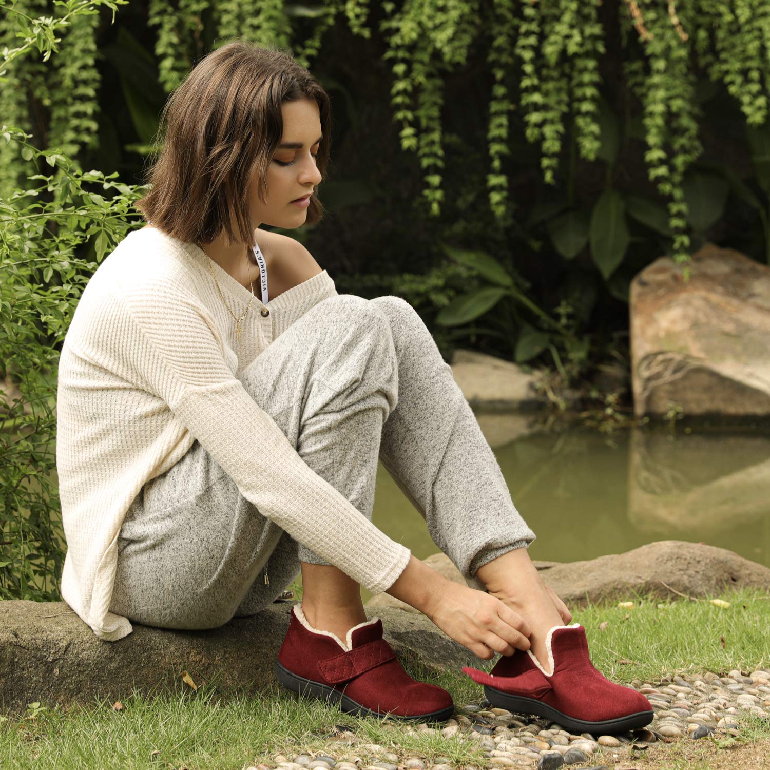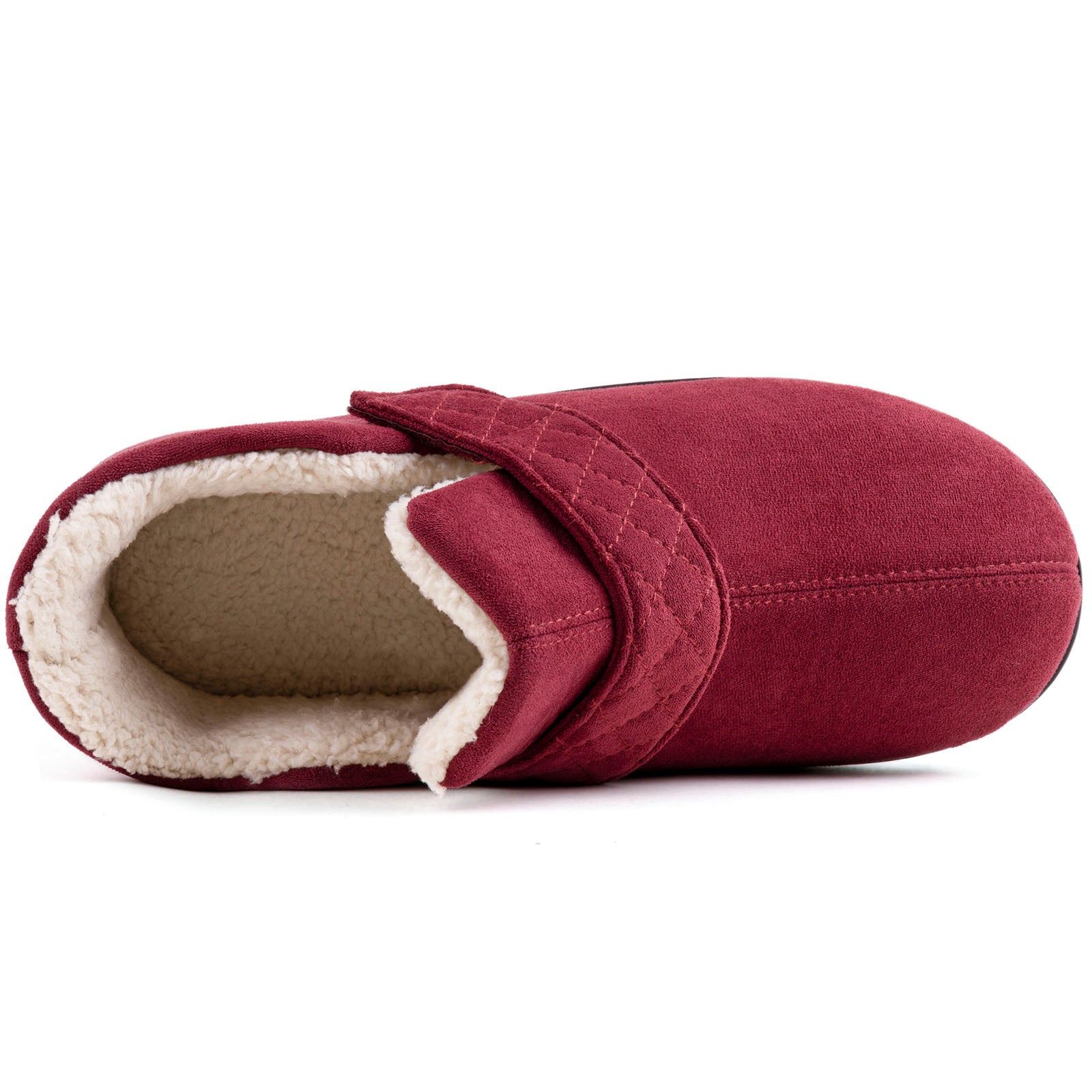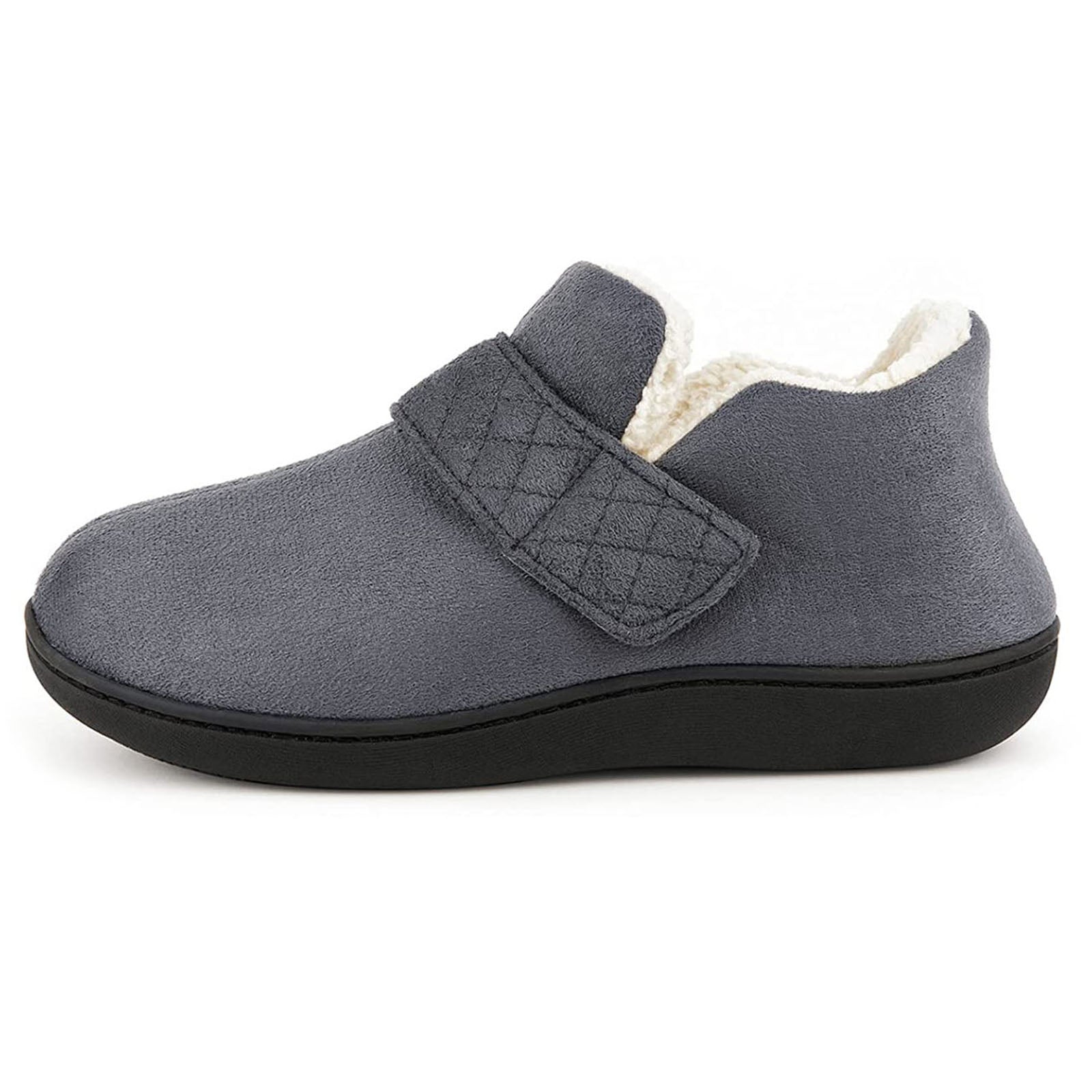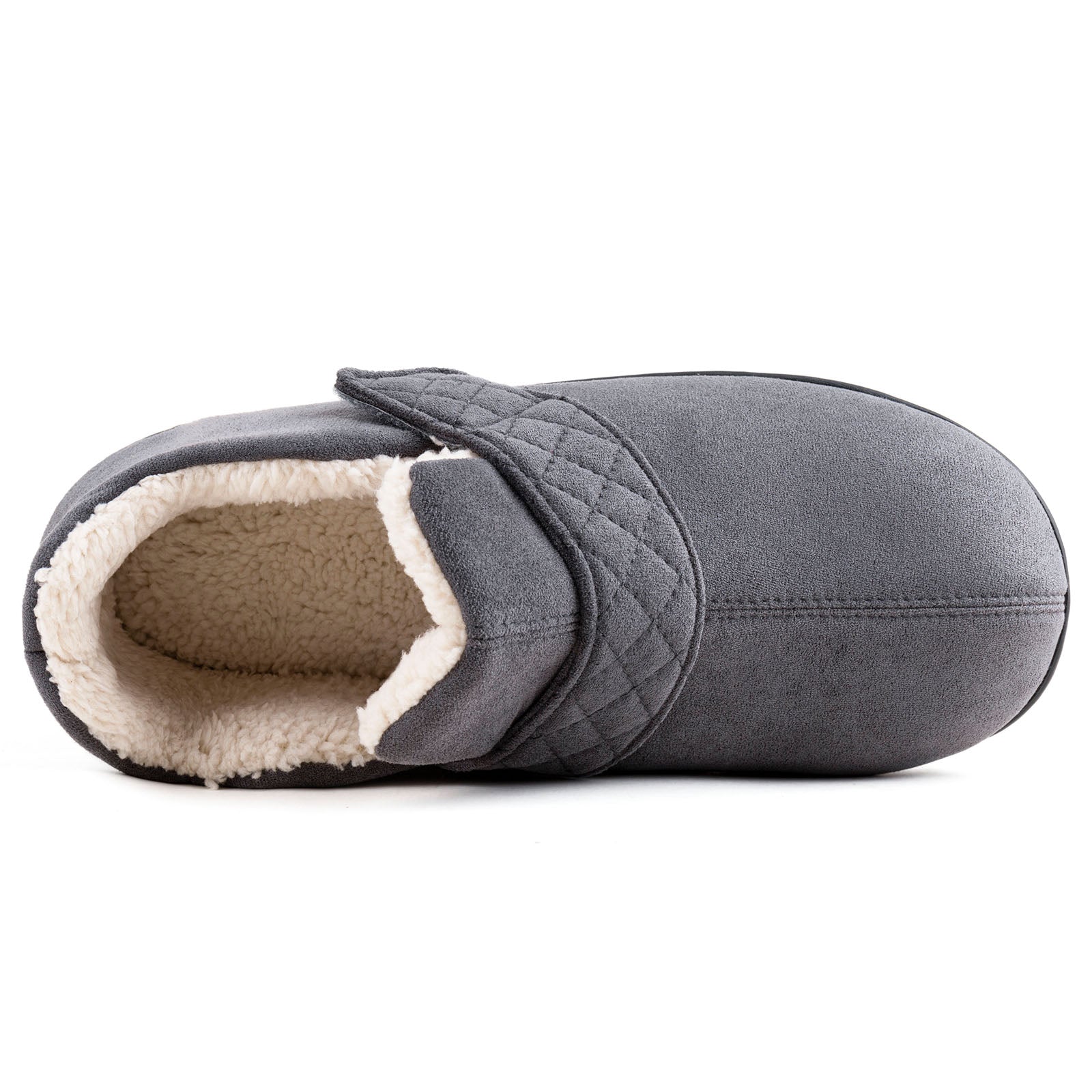 - This bootie style slipper features a fully closed back to prevent your feet from slipping out, with an adjustable strap that customizes your fit.